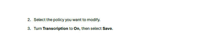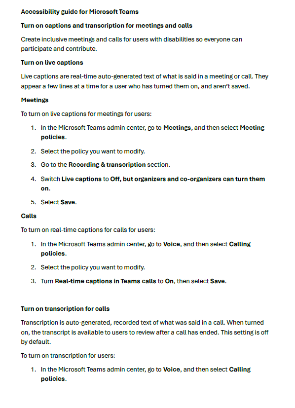 This page shows, in writing, how to activate functions such as: Live Captions (subtitles) and Transcription.